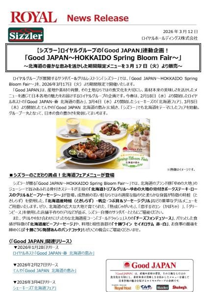 【NEWS RELEASE】「Good JAPAN〜HOKKAIDO Spring Bloom Fair〜」3/17(火)より販売開始のお知らせ